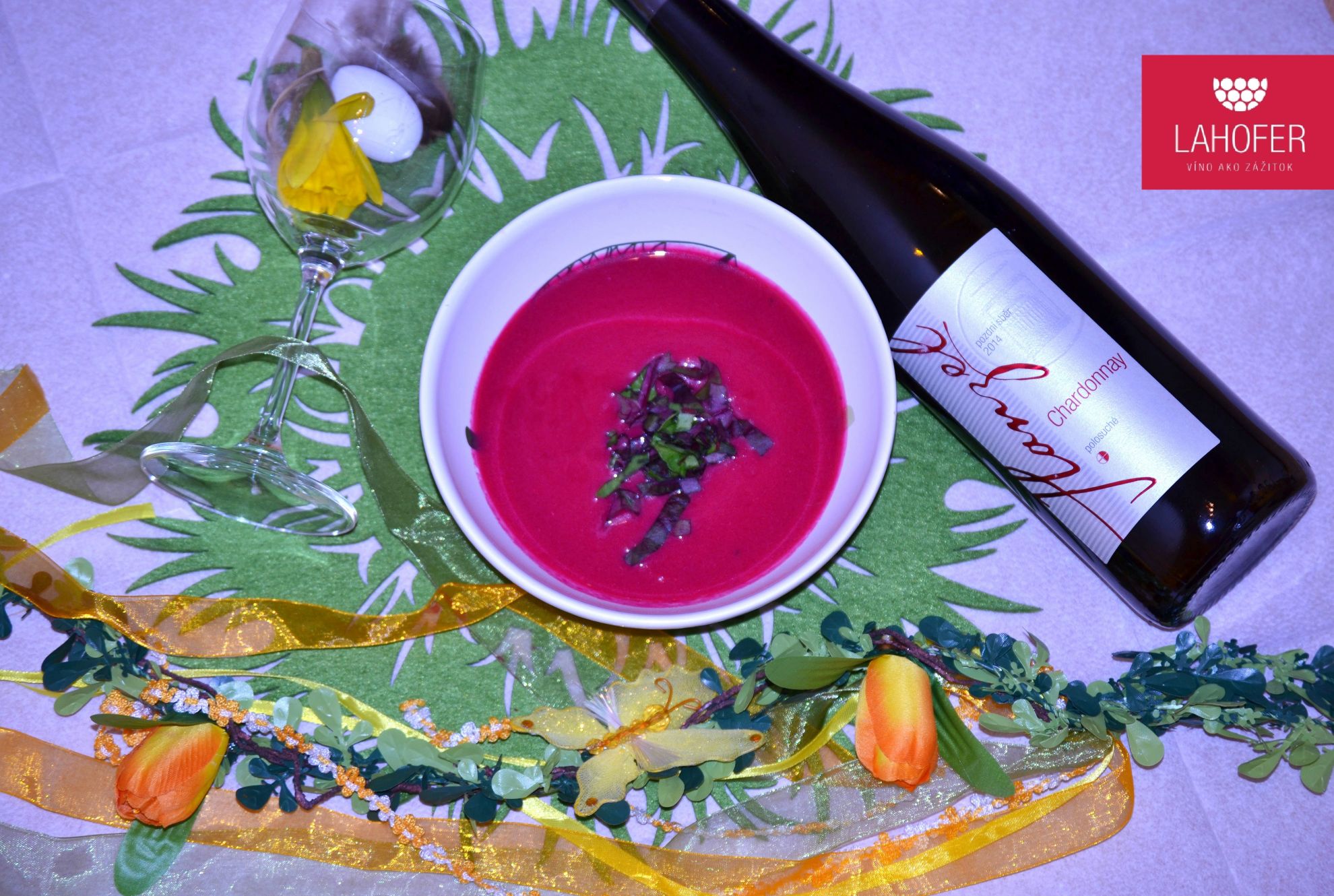 - chod: Krémová polievka z červenej repy + Chardonnay - polosuché 2014